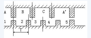 電機轉子均勻分布著很多小齒,定子齒有三個勵磁繞阻,其幾何軸線依次分別與轉子齒軸線錯開。01/3て、2/3,(相鄰兩轉子齒軸線間的距離為齒距以て表示),即A與齒1相對齊,B與齒2向右錯開1/3て,C與齒3向右錯開2/3て,A'與齒5相對齊,(A'就是A,齒5就是齒1)下面是定轉子的展開圖: